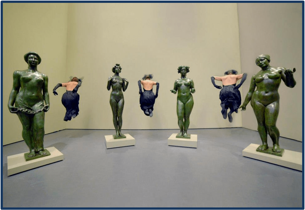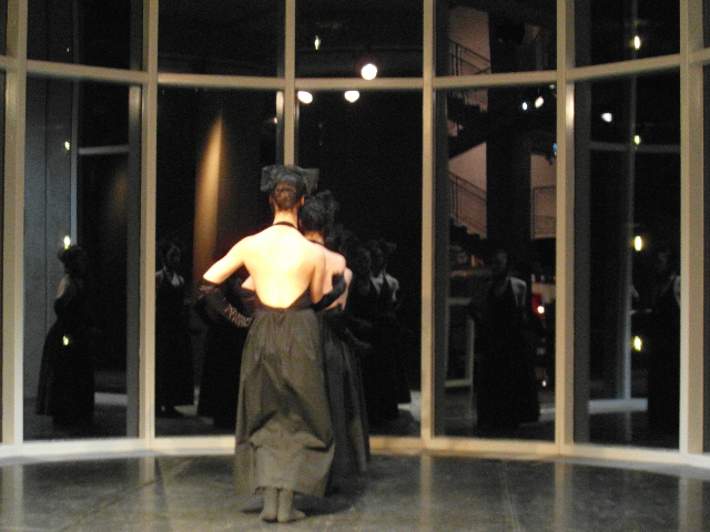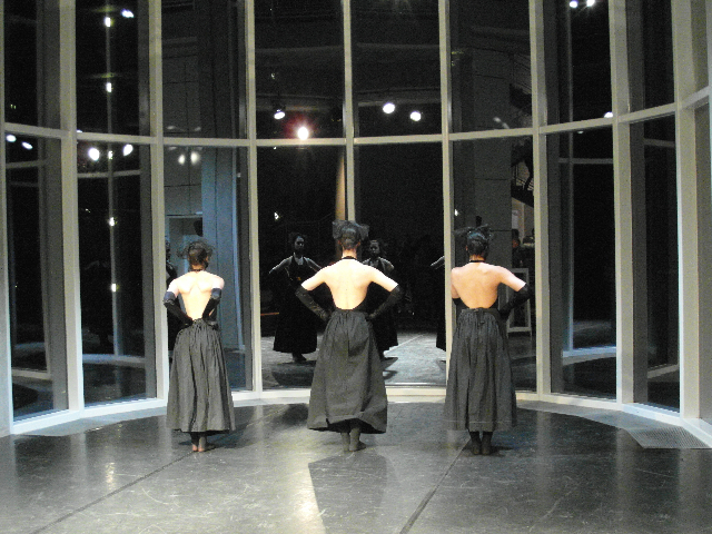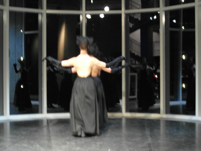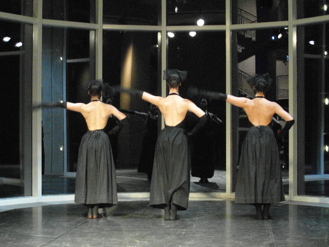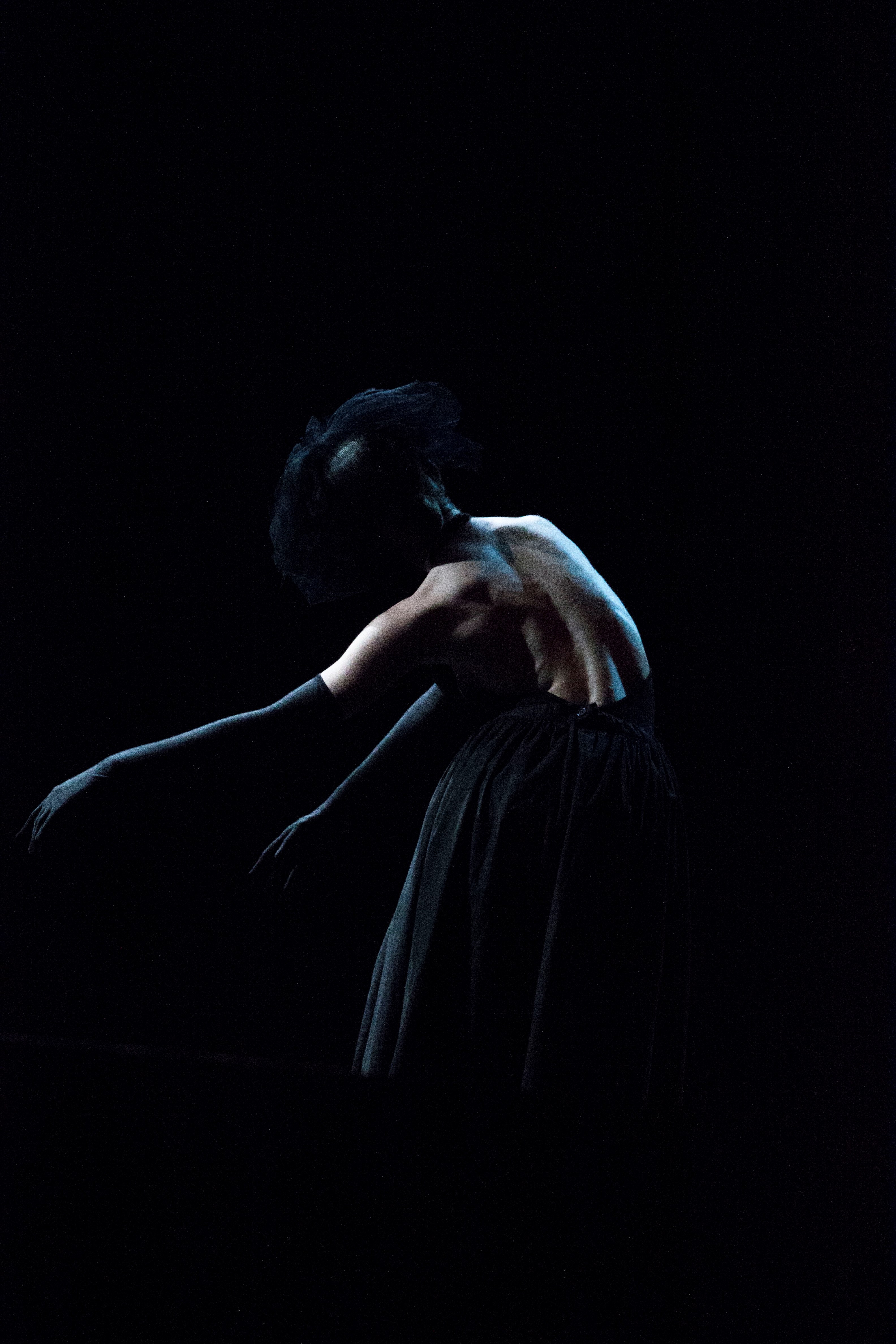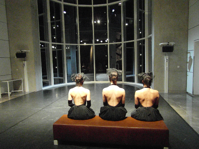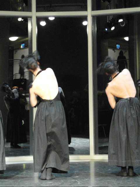 Created, in 2012, for locations like museum and galleries and performed just with sounds of waters and in silence. In 2013 was created another version to be performed in theatres as well accompanied by music, lights and use of the cyclorama. The two versions are similar and adaptable to any kind of space.