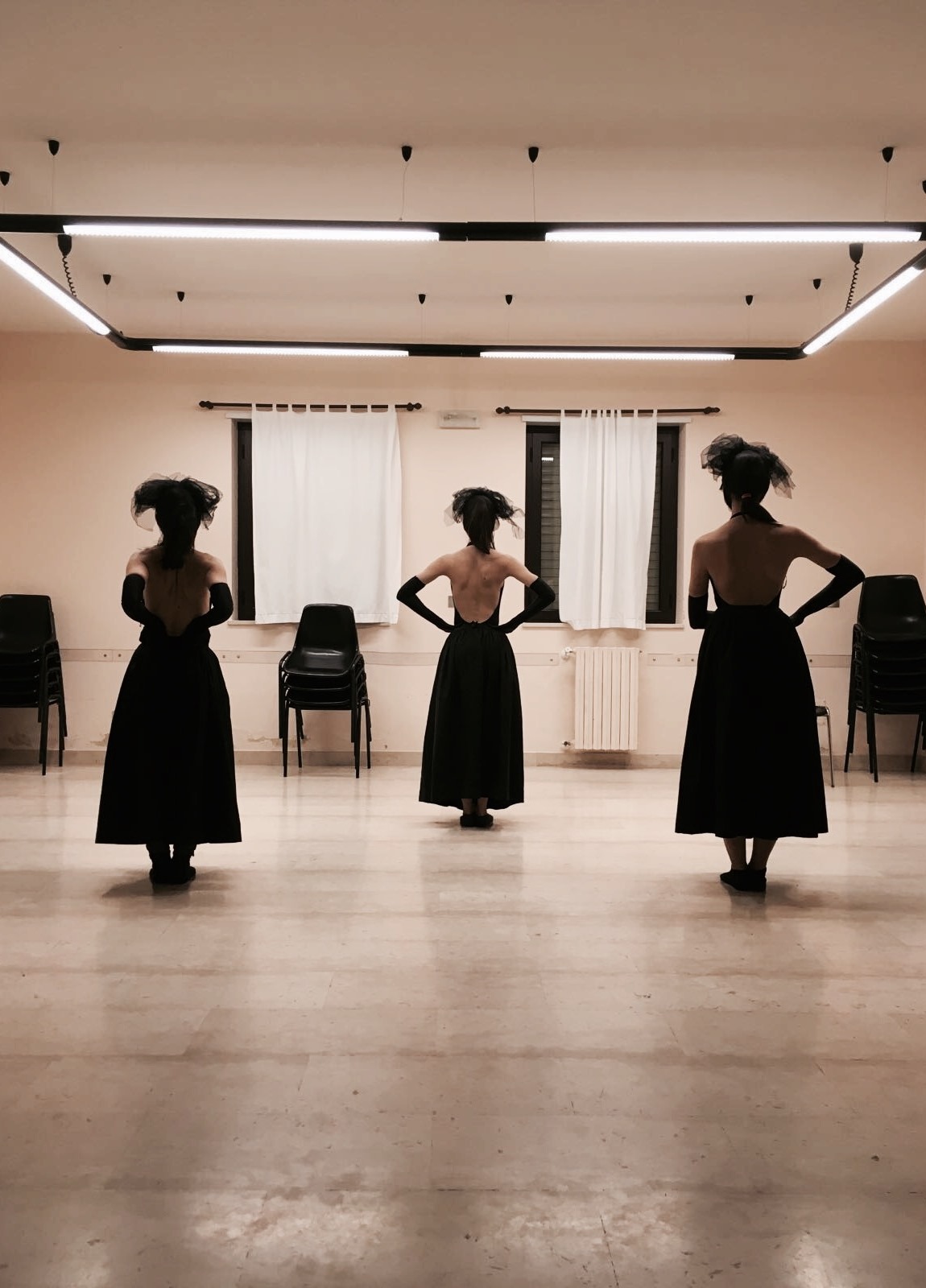 Three figures posing, is the beginning and the end of a long wait. This wait sees the likely return of their men from the nefarious sea.All this leads them to show to the public alternating moments of anger, prayer and even madness, until to celebrate a shortly expected ritual accompanied by the sounds of Vivaldi.
