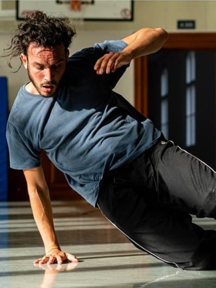 Classes and workshops focus on activating the body and exploring different physicalities. Starting from moments of guided improvisations at different levels in space, leading to short sequences as well as training musicality and awareness in relation to space and others.
